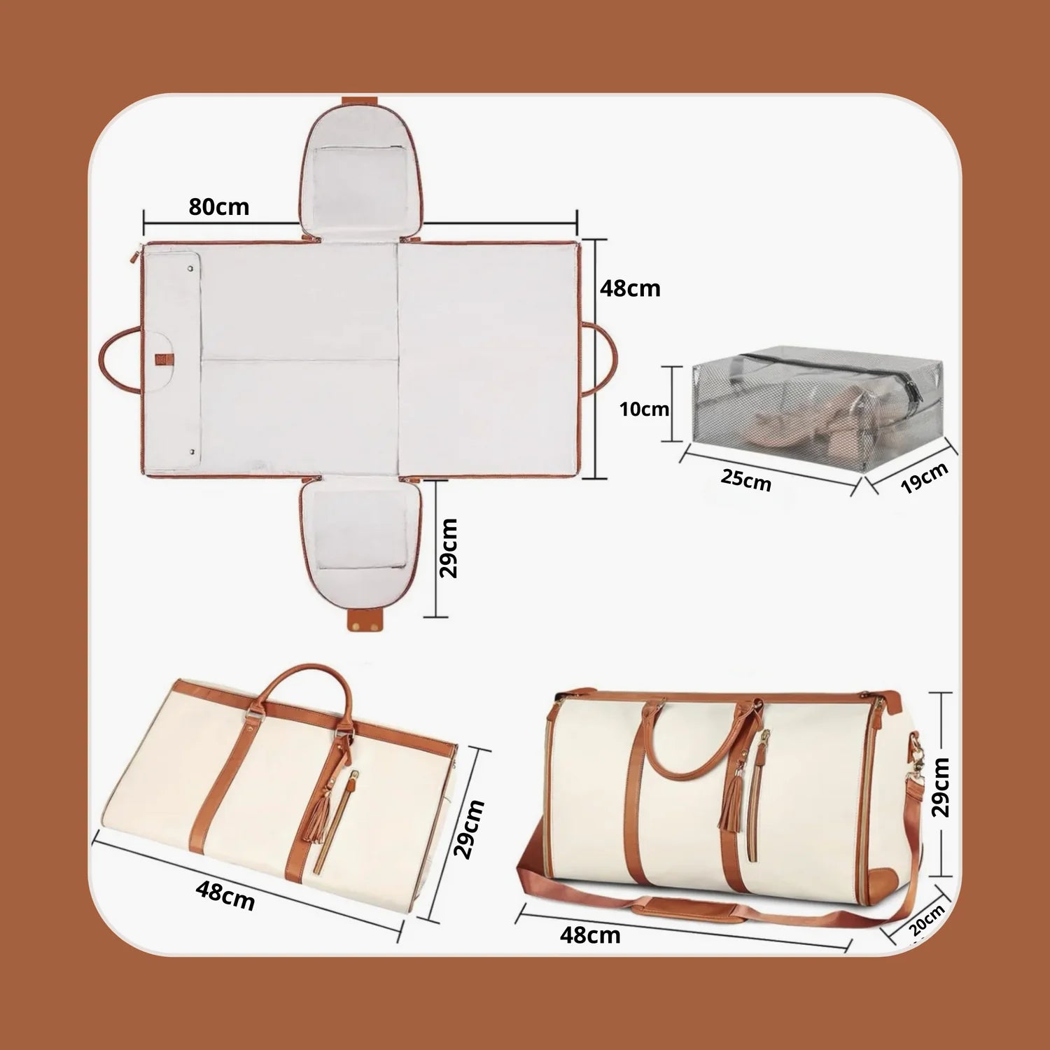 - Materiali: Pelle PU Premium, Resistente all'acqua, Cerniere impermeabili, Tracolla regolabile, Manici rinforzati per tote, Scomparto per scarpe impermeabile e antiodore