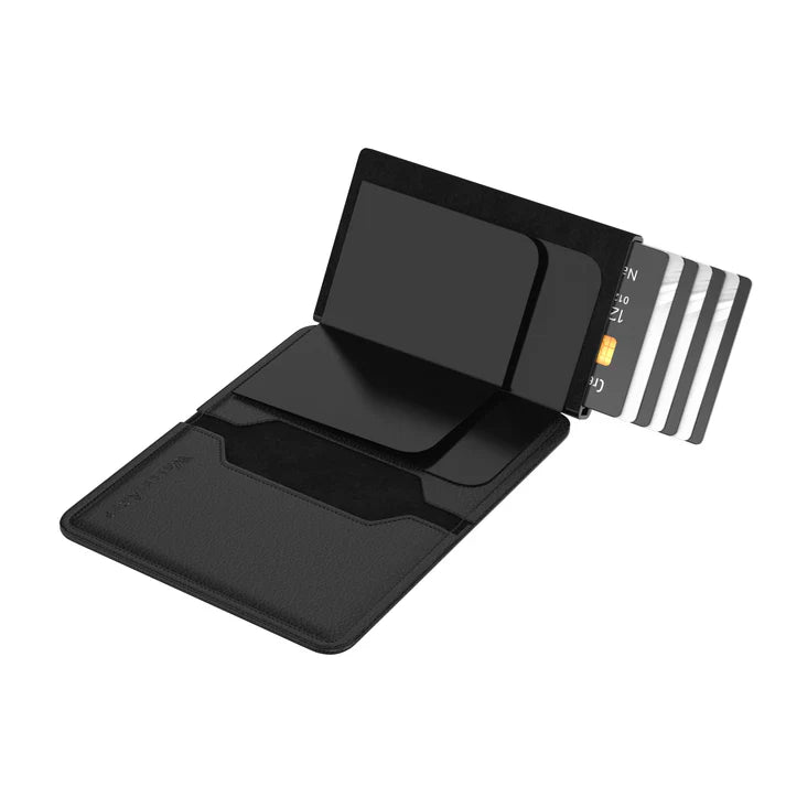 Caratterizzato da un porta carte automatico e diverse tasche per i contanti.
